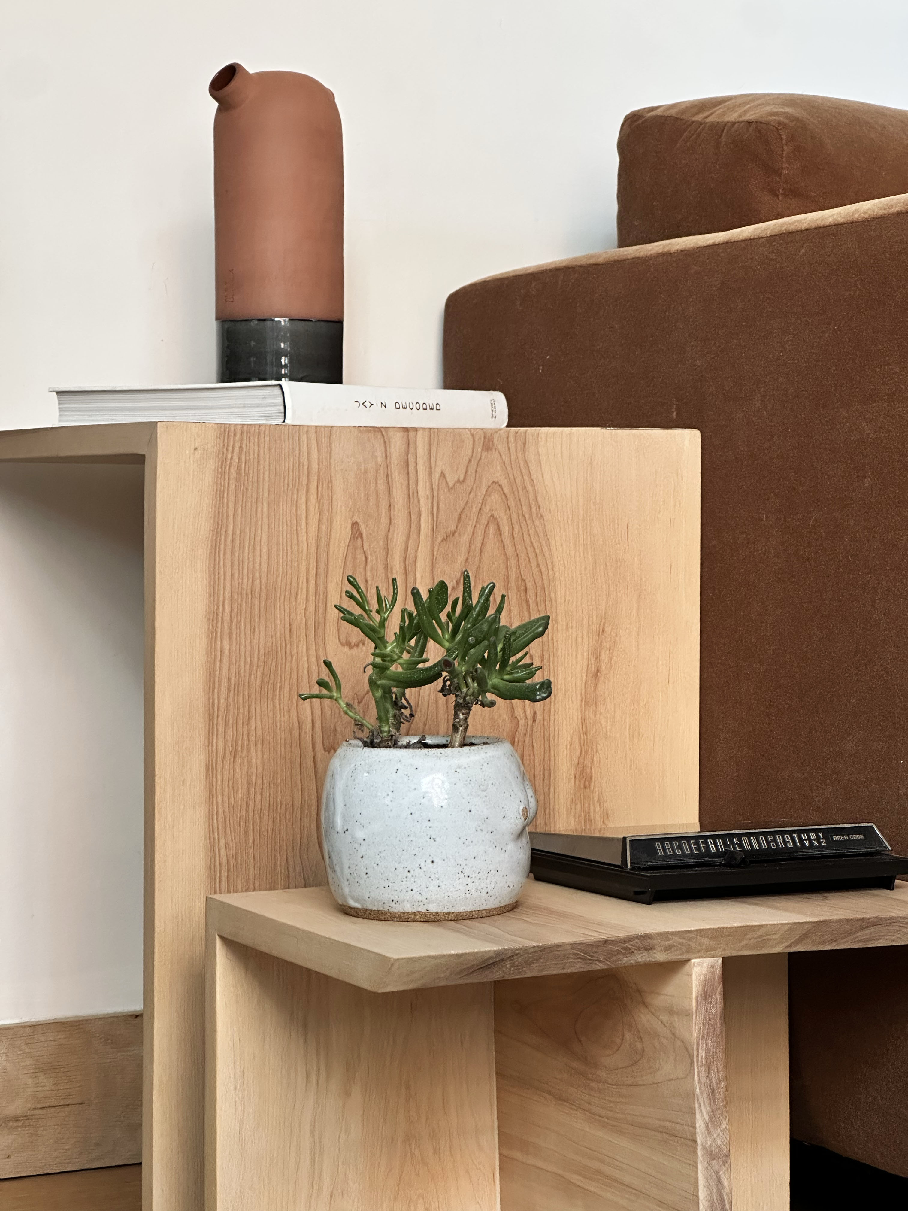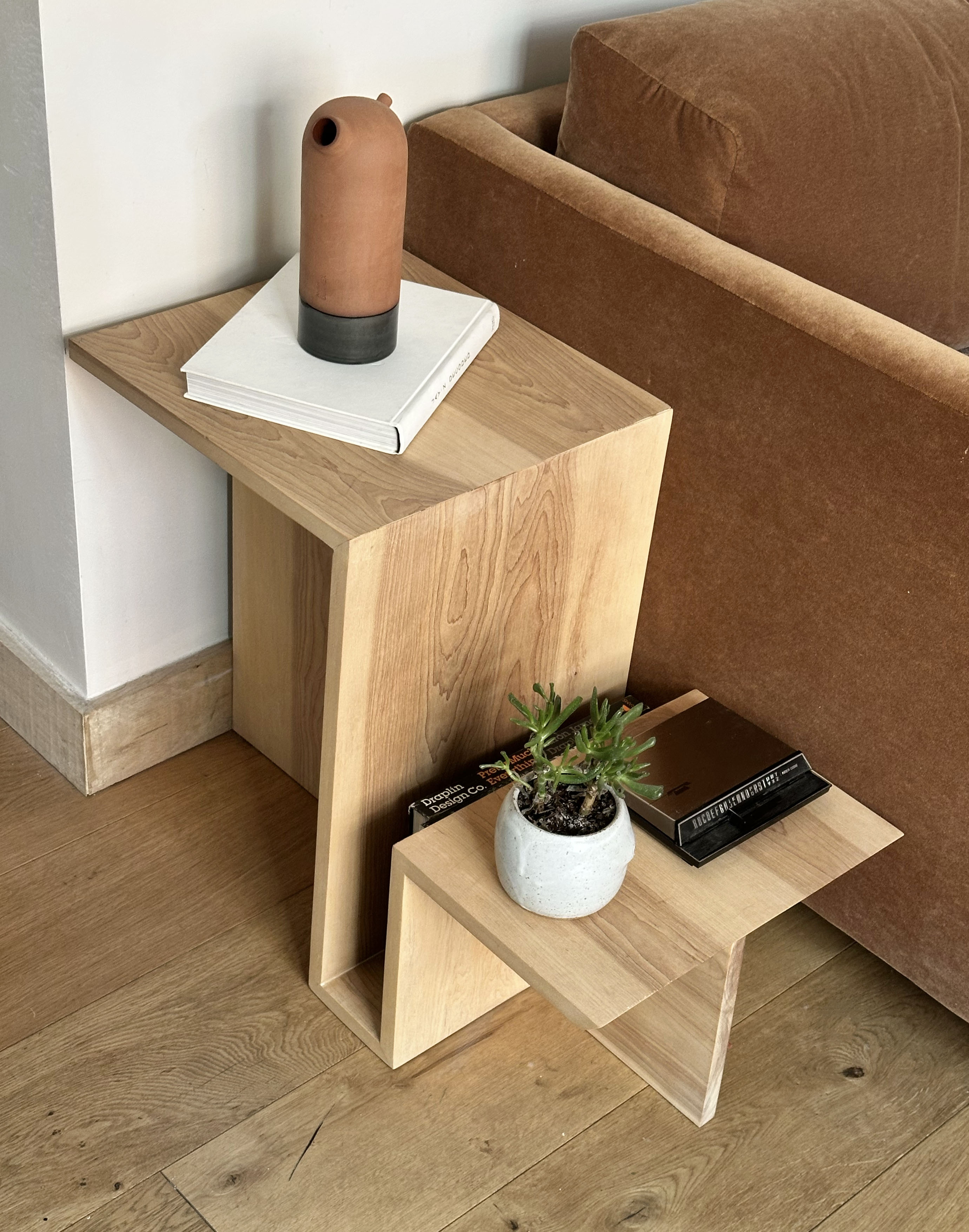 Inspired by the stepped living of the mountain west, plateaus is like plateaus. Side tables are better when you have more than one place to put things and even a wee slot for some books. Tucks nicely in next to a couch. You like it.